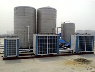 上海太阳能工程-上海湘宸太阳能公司15821413123是一家以太阳能热水器生产为主的太阳能工程厂家,公司在太阳能行业有做过的工程案例有:平板太阳能热水器,阳台壁挂式太阳能热水器,分体太阳能,平板分体太阳能热水器工程,等,公司承接太阳能热水器工程,太阳能采暖,太阳能发电,太阳能空调等。 如果您有这方面的需要,我们可以免费给您勘察现场,给您免费做方案与预算报价等,一套太阳能热水工程设备系统,所投资成本是现在所用能源三年费用的上一套太阳能热水工程设备,前三年收回投资成本后可以免费使用七到十年以上,节能环保省钱看得到。 第三节、空气源热泵设计实例 一、工程概况 本项目是新港橡胶厂职工洗浴热水工程。本项目共4栋宿舍楼,每栋宿舍楼均为6层,其中两栋为每层为13个房间,2栋为每层11个房间。每个房间内均有热水龙头,每个房间入住员工约6人,则住宿员工人数分别为468人、468人和396人、396人。 现场情况: ●楼顶有确定水箱和主机承重位置,楼顶通风情况良好。 ●热源设备计划采用绿色节能的空气源热泵热水机组。 ●每栋楼顶已经有冷水箱,需要增加2吨和8吨的保温水箱各两套。 ●每人洗浴水量按40L/天,则每天总洗浴量为468×40L=18720L=18.7吨,396×40L=15840L=15.84吨。 ●实际每栋楼按20吨设计,将系统分为两个单元设计。每个单元10吨。即整个洗浴系统分为8套10吨系统,共计水量为80吨。 二、设计说明 1、建设单位提供的关于本工程的有关资料和设计要求。 2、国家现行的设计规范、规程。 (1)《建筑给水排水设计规范》GB50015-2003 (2)《室外给水设计规范》GBJ13-86(1997年版) (3)《二次供水设施卫生规范》GB17051-1997 (4)《给水排水制图标准》T50106-2001 (5)《建筑给水排水及采暖工程施工质量验收规范》GB50242—2002 3、设计参数。 (1)室外气象参数 地区:上海 (2)冷热水参数 (3)热水用水定额参数 三、主机设备选型计算(按每个单元设计) 日均热水使用量计算: V=10,000L,即10吨。 (一)、计算热水热负荷 每天的热水用水量约为10.0吨。自来水温度按全年低15℃计算,热水出水温度为55℃,则每天的热水热负荷为: Q=V•c•(tr-tl)/860(Kcal/KW.h) =10000×(55-15)/860 =465.11kw.h 式中:Q——热负荷量(kw.h) V——热水量(L) c——水的比热,取1kcal/(L•℃) tr——热水温度(℃) tl——冷水(自来水)温度(℃) 四、机组选型,计算机组台数和工作时间 空气源热泵热水器选用5P机组。在名义工况下,该机组制热量为18.0kw。若在名义工况下工作时间为12.0小时(机组每天的工作时间一般不应大于14h),则所需机组的数量为: N=Q/(T•W)=465.11/(12.0×18) =2.10台,取N=2台。 式中:N——机组数量(台) Q——热负荷量(kw.h) T——名义工况下设定的机组运行时间(h) W——名义工况下机组制热量(kw) 校订工作时间: Ts=Q/(N•W)=465.11/(2×18) =12.64h 式中:Ts——名义工况下机组实际运行时间(h) Q——热负荷量(kw.h) N——机组数量(台) W——名义工况下机组制热量(kw) 结论:在名义工况下,采用2台5P型机组,每天工作12.64个小时可制取10吨55℃热水(温升40度)。 五、冬季校核 考虑到白天与夜间的室外温差,结合热泵制热运行的热效率受环境温度影响的特点,建议机组在冬季的实际工作时间设定在早6:00~晚10:00的时间段,此时间段当地的低室外平均温度约为0℃。查5P型机组性能曲线表,该机组在环境温度0℃时的制热量为10kw,则2台5P热泵机组每天完成加热10.0吨55℃热水的时间为: Td=Q/(N•Wd)=465.11/(2×10)=23.2555h 大于14小时,故需要配置辅助电加热系统,电加热系统功率为18KW,则冬季主机启动时间为: Td=Q/(N•Wd)=465.11/(2×10+18)=12.23h 小于14,故设计合理。 式中:Q——冬季机组日制热量(kw.h) Wd——冬季机组单机小时制热量(kw) N——机组数量(台) Td——冬季时机组日运行需要时间(h) 采用2台5P机组可以满足冬季时的制热需求。系统中电辅助加热配置18KW。 六、结论 通过以上设计计算可以得出,选用2台5P热泵热水机组和辅助18KW电辅助加热,可满足该项目在环境温度为0℃及以上时每天制取10.0吨55℃热水的需求(温升40度)。 系统原理图及优势说明 (一)、系统原理图 1、机组配置:本工程共设计了2台5P热泵机组; 2、补水方式:冷水从供水管路上接入保温水箱(2吨),由2吨水箱补到8吨水箱,采用电磁阀加液位开关控制; 3、加热控制:2台机组分别对2吨保温水箱加热,当T1温度低于50°C时,机组和循环泵启动,当T1到达55°C时,机组和循环泵停止; 4、定时加热:本系统也可设置定时加热,具体要求时间段根据时间情况可以调整,如有低谷电设置在低谷电时间为佳; 5、辅助系统:本系统采用电加热18KW,只有环境温度低于5°C时启动; 6、管道循环:管道定时定温循环,一开就有热水,根据员工下班时间可调节; 7、智能控制:本系统为全自动控制,无须专人看护。 (二)、系统优势说明 1、冷热水不混合,8吨大水箱温度永远不低于45°C; 2、水箱分开承重,避免冷热水的混合; 3、可以将加热时间调整到低谷电时间段,更加节省运行费用; 4、主机集中加热小水箱,热的更快; 5、膨胀阀采用热力膨胀阀,故障率低,控制精度高; 6、系统用水量大时,2吨水箱始终有水,主机不会因为缺水进入保护状态; 7、相对单个水箱,系统2水箱分开承重,减少对楼面的集中压力; 8、主机加热功能和其他循环功能互相独立,互不影响; 9、系统独有的液位和温度双控,可满足补充道大水箱的水都是45度以上的热水。 八、系