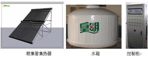 集热器、储水箱、控制系统、管道系统等(组成部分类似于分体系统)。