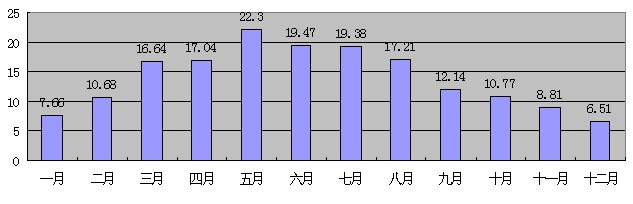 根据国家气象中心提供的《中国气象辐射资料年册(2001年)》全国各地水平面总日射月均日辐照量及年总辐照量数据(单位MJ/m2),水平面总日射月均日辐照量资料如下: