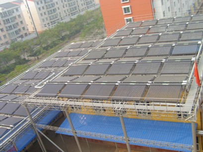 集中供水就是采用同一供水的方式,不再单独给每户设一台太阳能了。将所有的集热器集合起来和储水箱之间通过强制循环的方式进行集热,集热器放置于楼顶平台上或者造型上面,通过被动循环将集热单元吸收太阳光而得到的热量传输到储水箱,从而得到热水(热量)的大型集中系统。