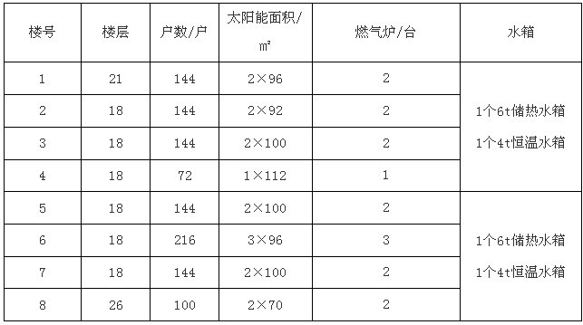 上海太阳能工程-上海湘宸太阳能公司15821413123是一家以太阳能热水器生产为主的太阳能工程厂家,公司在太阳能行业有做过的工程案例有:平板太阳能热水器,阳台壁挂式太阳能热水器,分体太阳能,平板分体太阳能热水器工程,等,公司承接太阳能热水器工程,太阳能采暖,太阳能发电,太阳能空调等。 如果您有这方面的需要,我们可以免费给您勘察现场,给您免费做方案与预算报价等,一套太阳能热水工程设备系统,所投资成本是现在所用能源三年费用的上一套太阳能热水工程设备,前三年收回投资成本后可以免费使用七到十年以上,节能环保省钱看得到。 1项目概况 翔龙•半山尚由国家住宅中心组织专家实地指导作为全国第44个国家级健康住宅试点项目。坐拥十堰城中生态胜地四方山风景区,地处张湾区凯旋大道中段。 作为城市中的山体建筑,翔龙•半山尚在总体规划上,建筑依山而建,大化保留原生山地,形成独特的自然、建筑与人和谐共生的半山建筑。项目层层退台附于山坡之上,融于山势之中,点缀其间,与山、水、人和谐地融为一体;规划还引入时尚、高品质的城市化生活元素,将自然与现代的都市生活融为一体。 项目地址:十堰市张湾区凯旋路98号; 项目占地:3.9万㎡; 项目总建筑面积:98574㎡(不计地下部分); 住宅建筑面积:90276㎡; 商业建筑面积:8298㎡; 容积率:约2.5; 绿化率:39%。 2设计资料 2.1项目基本情况(见表1) 表1项目基本情况 2.2日用热水量:120kg/户/日;合计1108户; 2.3热水供给方式:24h供应热水; 2.4冷水计算温度:15℃; 2.5热水计算温度:55℃。 3主要设备技术参数 3.1选用的平板型太阳能集热器规格参数(见表2) 表2平板型太阳能集热器规格参数 3.2所选CLHS0.1-95/70-Q燃气炉技术参数(见表3) 表3CLHS0.1-95/70-Q燃气炉热水炉技术参数 4系统设计方案 4.1半山尚项目各栋楼太阳能燃气炉辅助中央热水系统(1~8号住宅楼) 根据半山尚各栋住宅楼热水供应特点及日用热水总量,同时结合各楼的建筑结构,为每栋楼各单元分别设计一套独立的太阳能-燃气炉加热辅助中央热水系统,每栋楼各单元配置的太阳能热水系统均安装在屋顶,水箱和燃气炉及水泵等安装在设备间内,每栋各单元的系统配置见表4。 表4各单元燃气炉、水箱配置 4.2每栋楼单个太阳能热水系统配置说明 每栋楼每个单元的太阳能热水系统配置的面积相同,每个子系统配置1个6m3的储热保温水箱和1个4m3的恒温水箱,并配置1台燃气热水机组,对恒温水箱循环加热。冷水由补冷水电磁阀定时定量地向储热水箱中补充;恒温水箱的水由直流泵通过燃气炉从储热水箱中定量抽取,恒温水箱作为供热水水箱直接将里面的热水通过自动加压泵供应到热水管网中。为确保用热水期间各个取水点随时打开即可使用到恒定温度的热水及减少排放冷水造成的浪费,系统配置了1套定温回水装置。按照用热水人数、日用热水量及日用水总量等要求,每栋楼每个单元配置的太阳能-燃气炉辅助加热系统所配置的水箱总储水量完全可以满足每日的总热水量需求:在实际用热水需求量大于水箱总储水量的季节,定温直流泵可以根据恒温水箱保护水位的情况定量补入适量的冷水经燃气炉定温加热后使用;而在实际用热水需求量低于水箱总储水量的季节,也可以通过调整恒温水箱保护水位,减少每日的补水量以减少辅助加热能耗(如果需要辅助加热的话),既可以达到系统适应季节用热水需求量的变化,又能够有效节约辅助加热的能耗。图1为高层住宅平板太阳能集中供水系统。 5系统控制说明 5.1太阳能循环系统的控制 太阳能系统采用小温差循环,即通过设在太阳能集热器阵列末端出口与保温水箱下部两个测温点之间的温差控制循环泵的工作状况:当温差较大时(△T=3~6℃),温差控制器发出指令,循环泵工作,水在太阳能集热器内循环加热;当温差较小时(△T=1~2℃),循环泵停止工作,如此反复。在日照正常情况下,保温水箱内的水温到晚上使用时可达到设定的使用温度,此时无须进行辅助加热,供热水时热水直接由保温水箱供出。 5.2燃气炉加热控制 燃气炉辅助加热受恒温水箱的水温、水位和设定的时间控制。当恒温水箱水位未达到设定的水位,燃气炉开启加热,当燃气炉内水温达到设定温度时,定温直流泵开启,自太阳能热水系统储热水箱抽水,将炉内的热水压到恒温水箱储存,直到炉内温度低于设定温度时停止,燃气炉继续以定温方式工作,此过程如此反复,直到恒温水箱水满为止;当储热水箱的水位达到满水位或控制上限水位时,如果由于回水或系统散热损失而使恒温水箱水温低于设定供水温度时,则燃气炉和炉循环泵开启工作,使恒温水箱的水在燃气炉与水箱之间循环加热,直至达到设定的使用水温时燃气炉和炉循环泵停止,如此反复,可确保系统正常的热水供应。 5.3补冷水系统的控制 本热水系统所配备的水箱的总储水量基本可以满足每个住宅楼每户每天的用热水需求,考虑住宅楼热水用水量变化的实际情况,太阳能系统的冷水由配置的补冷水电磁阀定时、定量补入储热水箱(半山尚各栋楼系统),并且在供应热水的过程中按照用水量的大小,限量补充部分冷水。 5.4系统供回水的控制 热水由恒温水箱经自动加压泵供出,系统所配备水箱储水量完全能满足每栋楼用户每天用热水需求。为确保各个出水点的热水质量,系统设置了一套定温回水装置,回水温度控制器自