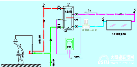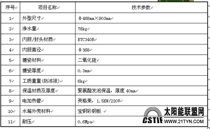 上海太阳能工程-上海湘宸太阳能公司15821413123是一家以太阳能热水器生产为主的太阳能工程厂家,公司在太阳能行业有做过的工程案例有:平板太阳能热水器,阳台壁挂式太阳能热水器,分体太阳能,平板分体太阳能热水器工程,等,公司承接太阳能热水器工程,太阳能采暖,太阳能发电,太阳能空调等。 如果您有这方面的需要,我们可以免费给您勘察现场,给您免费做方案与预算报价等,一套太阳能热水工程设备系统,所投资成本是现在所用能源三年费用的上一套太阳能热水工程设备,前三年收回投资成本后可以免费使用七到十年以上,节能环保省钱看得到。 一、项目概况: 西岸国际花园是由中铁置业集团在西安市浐灞生态区开发的一大型适居社区,定位白领阶层的高品质住宅区。项目位于西安市浐灞生态区新灞路(北二环东延伸段)以南,浐水西路两侧。西临东二环大明宫遗址公园,东临浐灞生态区核心广运潭景区。占地约200亩,分三期开发。分别是北苑、西苑和东苑,西苑位于西安市广运潭大道西,广安路南。规划地上建筑面积210434平方米,1820户,生活热水采用广东五星太阳能股份有限公司的平板阳台壁挂太阳能热水器来提供。 二、产品技术方案 每户采用一台80升平板阳台壁挂式太阳能来提供生活热水,系统采用强制循环。阳台强制循环系统采用水箱水温与集热器介质温度的温度差,利用循环泵强制驱动集热器介质向水箱流动,使储热水箱中的水不断提高温度,满足热水用水要求。 阳台强制循环系统由平板集热器、储热水箱、集热管道、全自动控制仪、循环水泵组成,相比自然循环系统,增加了循环水泵,强制采集热量,整体热效率要高于自然循环系统。 1、方案示意图 2、运行原理图 运行说明: 本系统采用双循环换热系统,即水箱的夹套层与集热器流道、连接管道三者构成一个循环系统;内胆与系统外的管道构成另一个循环系统。 水箱内胆里的水是通过夹套层的介质实现换热,但水与介质并不相通:在太阳光的照射下,集热器流道内的介质被加热,介质温度升高,与水箱夹套内的介质产生温差,当温差达到设定值上限时,循环泵启动,使集热器内的高温介质与水箱夹套内的低温介质进行强制循环,通过换热加热水箱的水,直到温差达到设定值下限时,循环泵停止。此过程如此往复,将水箱内的水加热。 3、产品配置 3.1平板型太阳能集热器规格参数 序号项目名称技术参数 1外型尺寸1950mm×820mm×95mm 2总面积1.60m2 3吸热面积1.44m2 4板芯焊接方式激光焊接 5工质重量(防冻液)1.8kg 6板芯涂层材料磁控溅射高选择性涂层(德国,氮氧化钛) 7板芯太阳能吸收率0.95±0.01 8板芯热发射率0.05±0.01 9重量30kg 3.2夹套承压储热水箱 储热水箱采用一体化搪瓷内胆夹套承压水箱(含电热管、面板控制器、阳极化镁棒等),其内胆和封头采用宝钢BTC340R钢板,厚度为1.8mm,内胆搪瓷厚度为0.3mm,采用先进的焊接工艺,确保水箱长期使用无渗漏;水箱保温采用聚氨酯发泡保温(厚度40mm);水箱的保温性能优良,24小时内热水温降不超过3℃,水箱外包采用的宝钢彩钢板制作;电热管为杭州河合英格莱电热管,功率为1.5KW,具有耐腐蚀、寿命长等优点。 附:夹套承压水箱规格参数 序号项目名称技术参数 3.3控制器性能说明 控制器为挂墙式安装,采用摩托罗拉微处理芯片,运用模糊控制技术,LED显示,内设漏电保护、低电压保护、防干烧保护,具有定时开/关机、温差循环、自动保温加热、温度设置、红外遥控、电子防电墙、故障自我诊断等功能。 3.4PS-Q泵站的性能说明 PS-Q泵站为我公司自产,主要包括循环泵、压力表及注液口等。其中循环泵采用欧洲产的威乐屏蔽泵,该泵具有超长使用寿命的强力马达,并且马达运行可靠平稳,噪音不超过45dB(A);泵轴为不锈钢,叶轮聚丙烯,经久耐用;碳和陶瓷制成的机械密封装置非常坚固,几乎不漏水;并且耐磨性能良好;水泵经过特殊合理的机体设计保证水泵组装容易、维修保养方便;还配置热过载保护装置及防止杂质卡住电机的结构设计保证马达运行的安全。水泵参数如下: 型号输入功率(W)全扬程(m)大流量(T/h)管径重量备注 RS15/693/67/466/5/32.5/2.5/1.515mm2.1kgIP42 三、施工安装技术方案 1、安装示意图 2、集热器具体安装设计 为使集热器更加美观,响应甲方要求,集热器设计有封板和堵板,使之更加美观、漂亮,和建筑融合性更好。见下图: 3、水箱与集热器的安装方案 水箱在东墙(地埋管) 水箱在南墙 水箱在北墙 四、项目效果