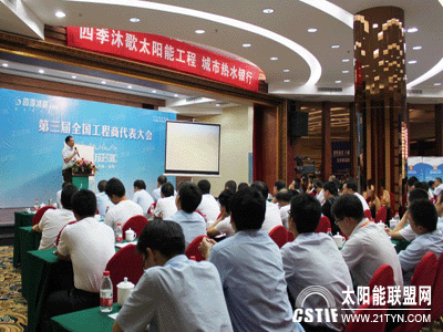 在本届工程商大会上,通过相关国家政策的宣传贯彻以及一些工程操作技巧的交流,增强了工程商对未来工程市场的信心。四季沐歌第三届全国工程商代表大会的成功召开,再次为全国的四季沐歌工程商伙伴搭建了一个“交流思想、缔结友谊、分享智慧”的平台,为各地的工程商朋友提供了一个绝佳的交流沟通、推动合作、共谋发展的机会,让工程商朋友们能够更加坚定地和四季沐歌站在一起,共同把太阳能工程市场做大做强。