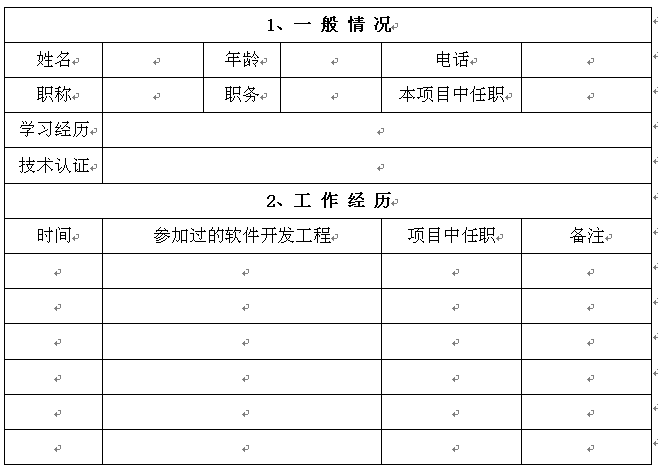 参加项目实施的组成人员资历表
