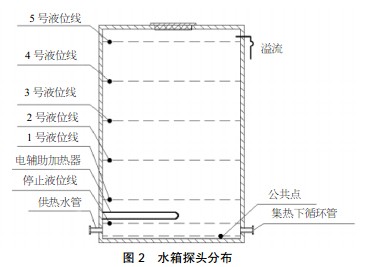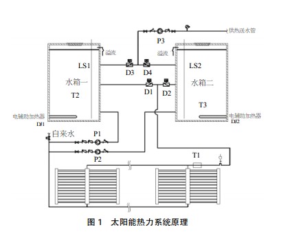 动力采用落水法取水,在运行过程中,两个水箱的水量、水温会发生各种变化,太阳能热力系统必须掌握两个水箱的水温、
